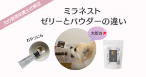 持ち運びに便利なゼリータイプもあります。以下の記事「【体験談】ミラネストゼリーの口コミ&犬の管理栄養士が試した驚きの結果!」をぜひご覧ください。
